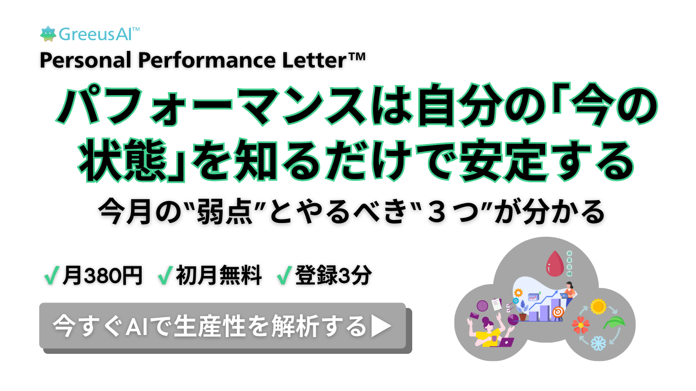 今の状態に合わせて、仕事の精度を一定にするためのパーソナルパフォーマンスレターです。